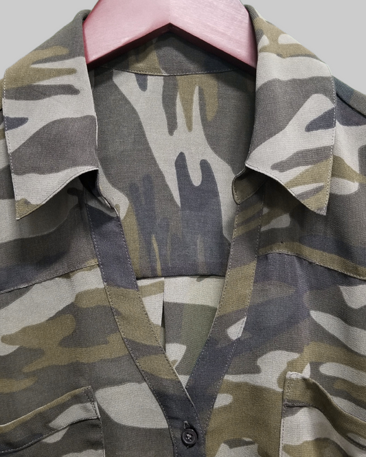 Women's V-Neck Button Down Long Sleeve Military Nylon Blouse