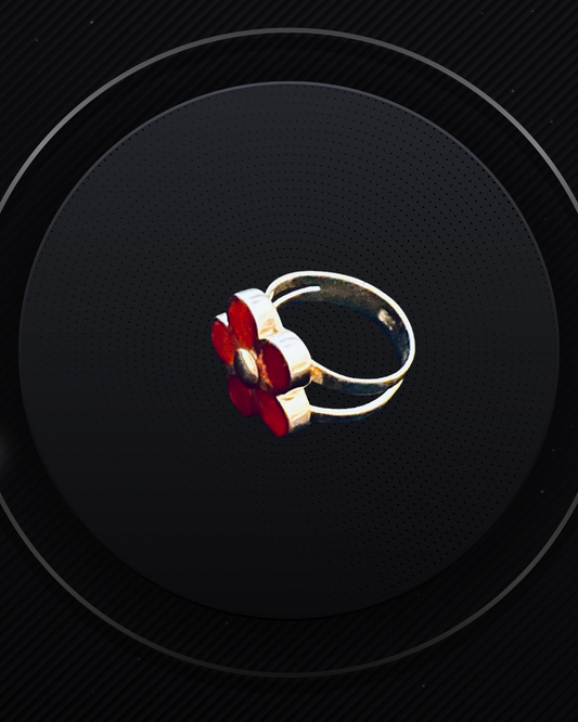 Abstract Design Ring with Red Stone and 950 Pure Sterling Silver