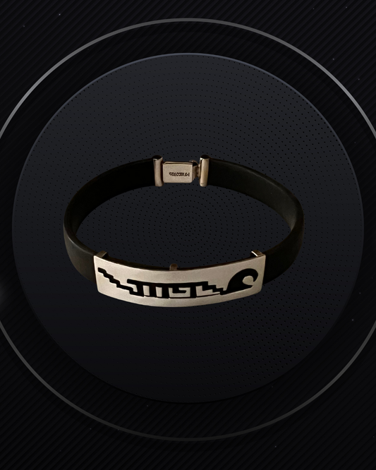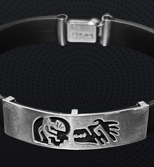 Tribal Black Rubber 925 Pure Sterling Silver Bracelet