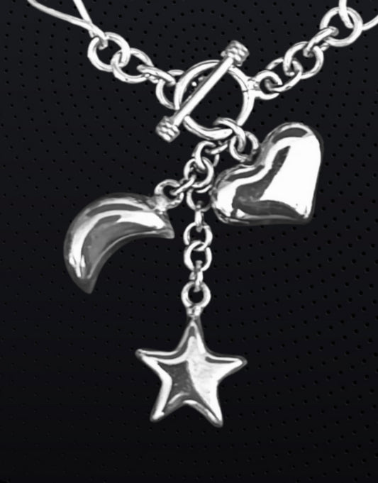 Timeless 925 Sterling Silver Link Bracelet with Heart, Star, and Moon Charms