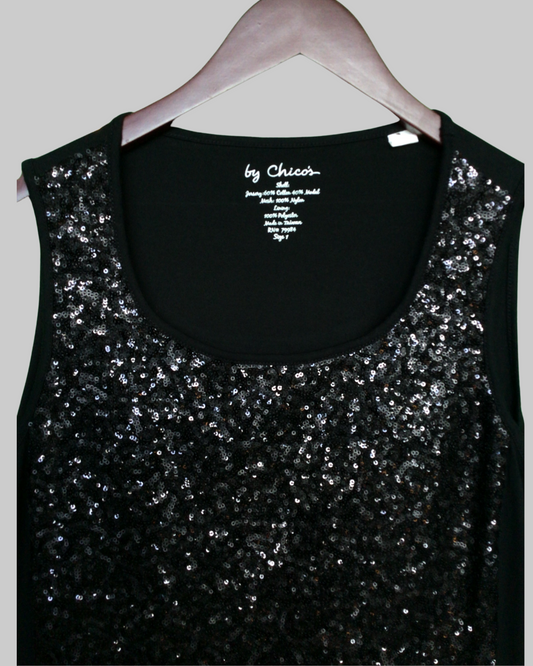Chico's Scoop Neck Sleeveless Black Sequin Tank Top