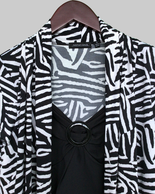 Notations Cowl Neck Black White Short Sleeve Blouse