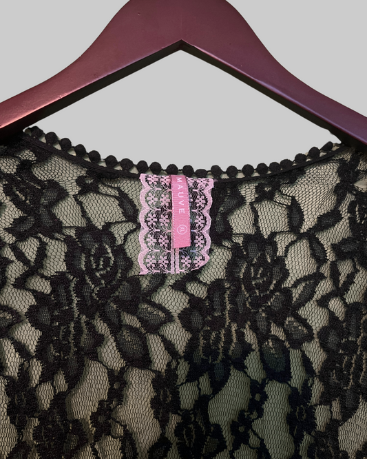 Mauve Black Lace 3/4 Sleeve Open Cardigan