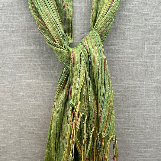Women's Knitted Green with Multicolored Stripes Pattern Scarf